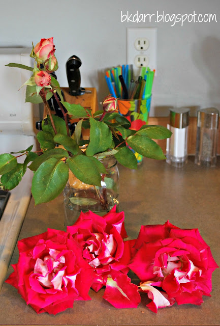 The roses had some other buds on the same stems so I left those attached and put them in a mason jar to bloom.
